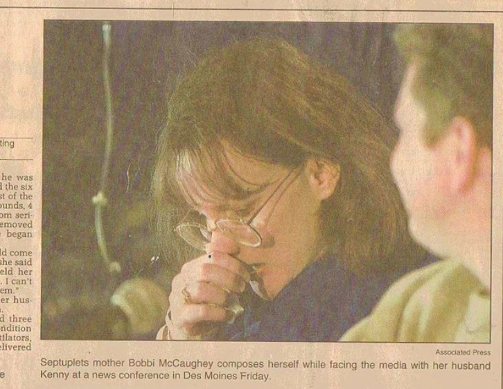 由於出生時間較早,等待報導的記者們都大吃一驚。他們都趕到得梅因醫院,拍到了七胞胎的第一張照片,並在停車場紮營,早早出生,等待報導這個故事的記者們都吃了一驚。他們都趕往得梅因醫院為這對七胞胎拍第一張照片,然後在停車場紮營,直到他們出院。