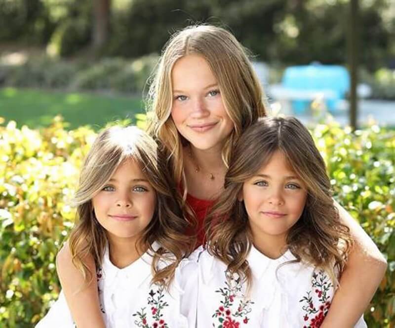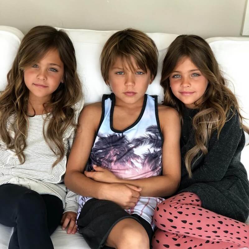 双子は、兄と一緒に写っています。お兄さんも同じように、明るい茶色とブロンドの髪、素晴らしい骨格、そして印象的な青い目をしています。この家族はまさに遺伝子という宝くじに当たり、美しい子供たちが生まれました。